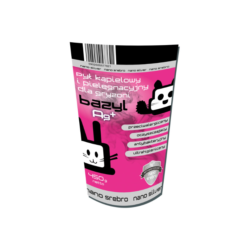 Bazyl Ag+ Bathing and Care Powder – smėlis šilšiloms, degu, jūrų kiaulytėms, žiurkėnams, triušiams, pelėms, žiurkėms ir kitiems graužikams.