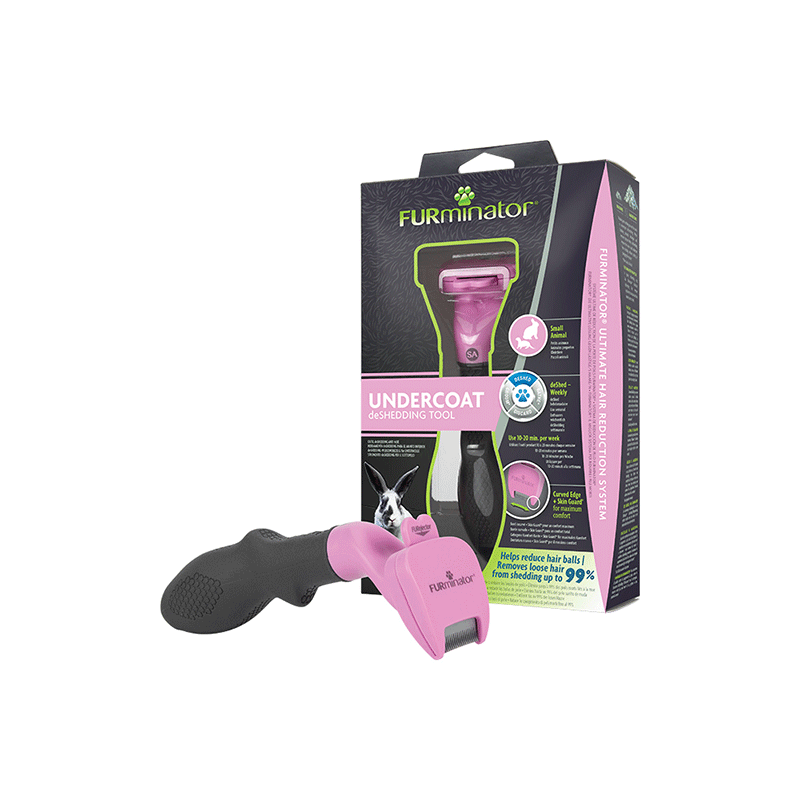 FURminator Undercoat deShedding Tool for Small Animals – specialios šukos mažų gyvūnų kailiui prižiūrėti.