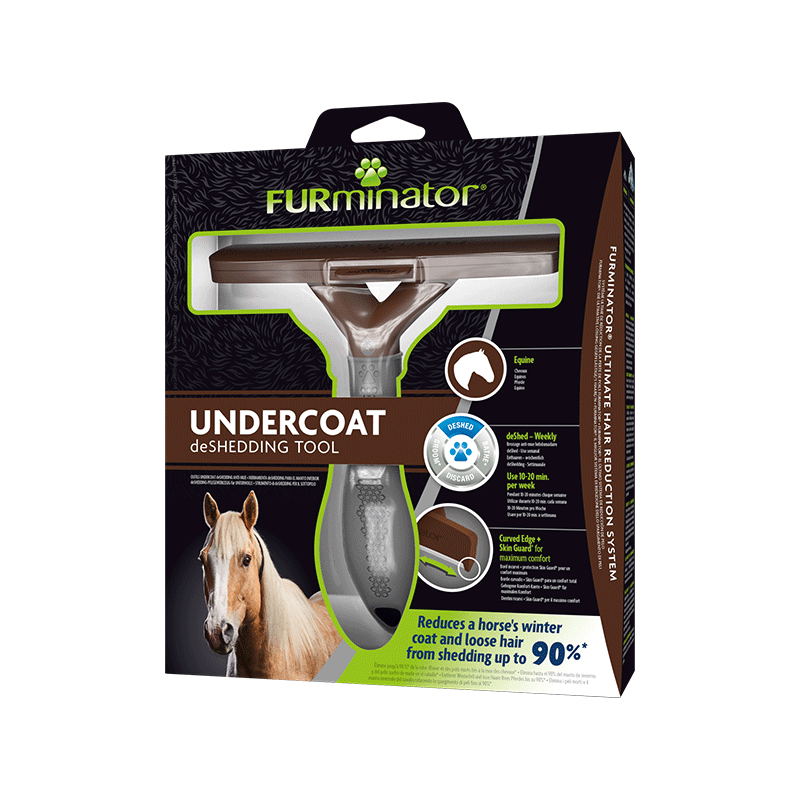 FURminator deShedding Tool for Equine – specialios šukos žirgų, asilų ir kitų stambių gyvūnų kailiams prižiūrėti.