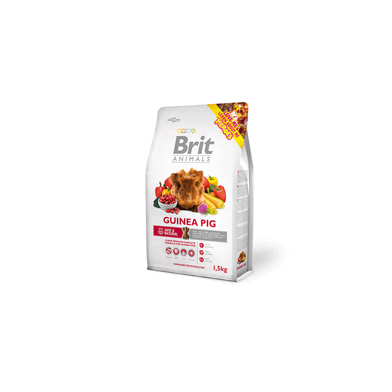 Brit Care Animals Guinea Pig – visavertis jūrų kiaulyčių maistas, papildytas tikruoju margainiu ir vitaminu C.