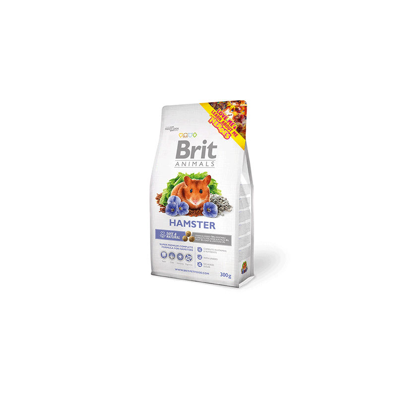 Brit Care Animals Hamster – visavertis žiurkėnų maistas, papildytas sėmenimis.
