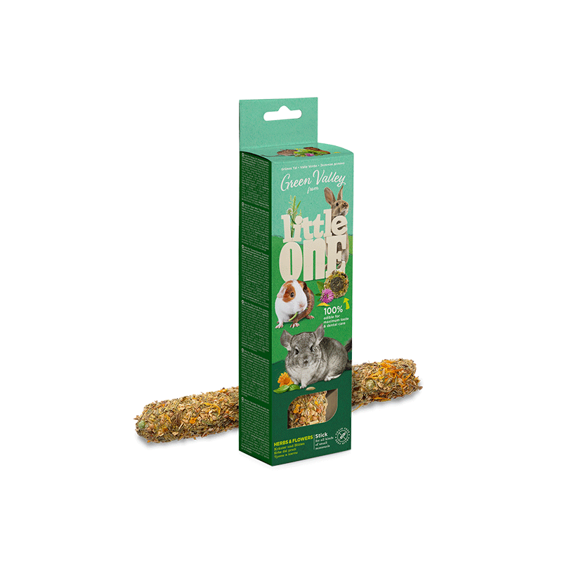 Little One Green Valley grain free stick with herbs and flowers – begrūdis skanėstas graužikams.