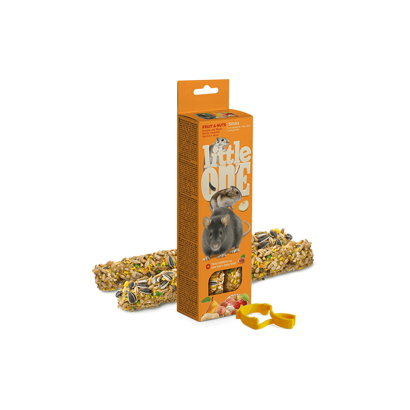 Little One gardžios lazdelės žiurkėnams, pelėms ir smiltpelėms su įvairiais vaisiais ir riešutais. Sveikas ir maistingas užkandis, puikiai tinkantis augintinio mitybai paįvairinti ir dantims stiprinti!