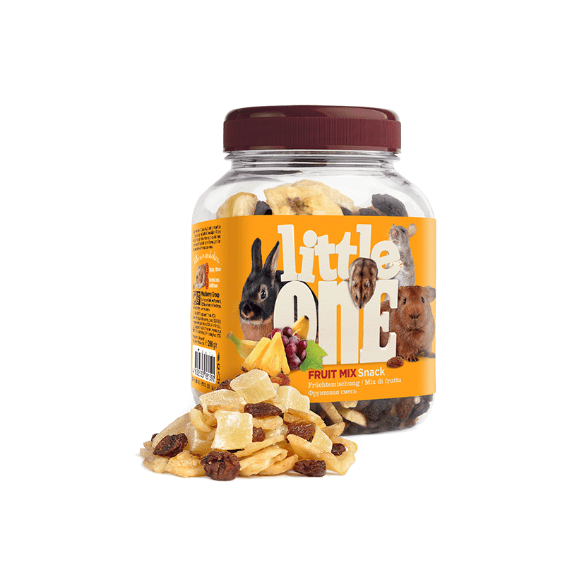 Little One skanėstai graužikams iš įvairių džiovintų vaisių: bananų, ananasų, razinų. Gurmaniškas užkandis, gausus maistinių medžiagų, vitaminų ir mineralų.