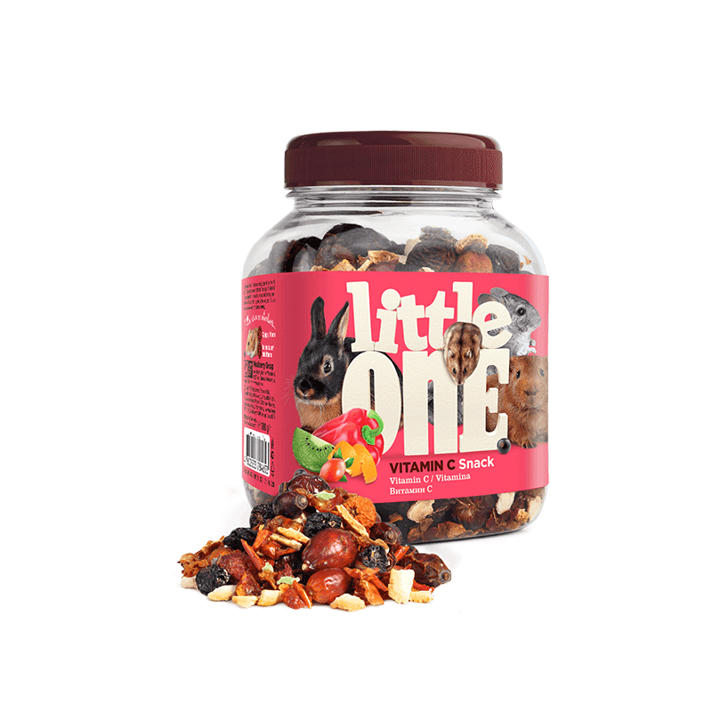 Little One vitamino C užkandis jūrų kiaulytėms, šinšiloms ir kitiems graužikams, gausus natūralių vaisių, daržovių ir uogų.