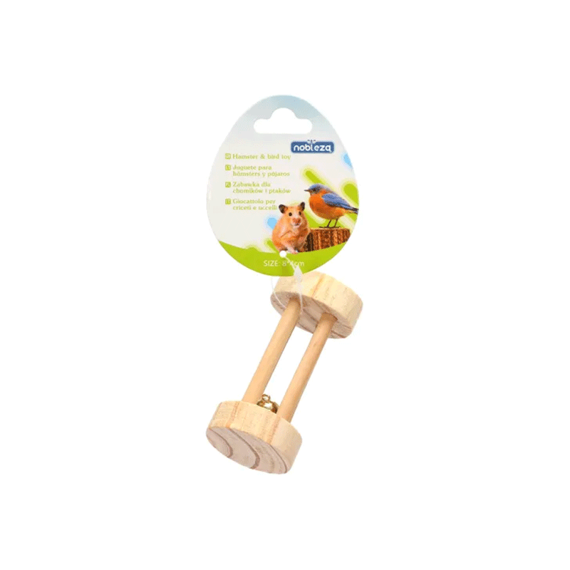Nobleza medinis žaislas su varpeliu, puikiai tinkantis graužikams ir paukščiams.