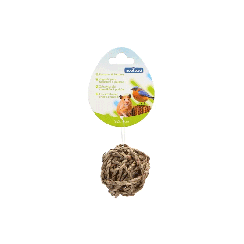 Nobleza šiaudų kamuoliukas, puikiai tinkantis žiurkėnams ir papūgėlėms žaisti.