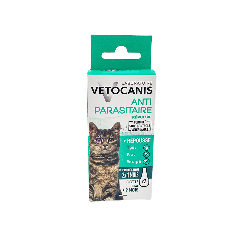 Vetocanis lašiukai nuo erkių katėms, efektyviai apsaugantys nuo įvairių parazitų.