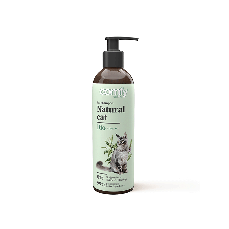 Comfy Natural Cat, 250 ml – šampūnas katėms, sudarytas iš 4 natūralių ekstraktų.