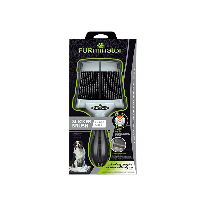 FURminator large soft Slicker brush – dvipusis šepetys šunims ir katėms, padedantis palaikyti švarų ir sveiką augintinio kailį.