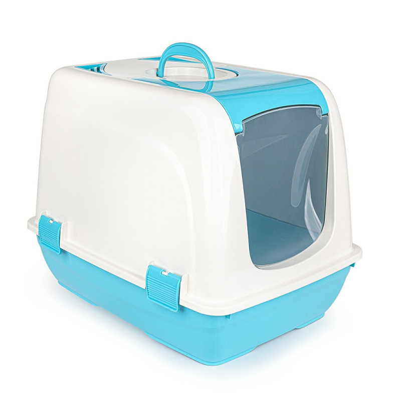 Happet uždaras kačių tualetas, pagamintas iš patvarių, gyvūnams saugių medžiagų.