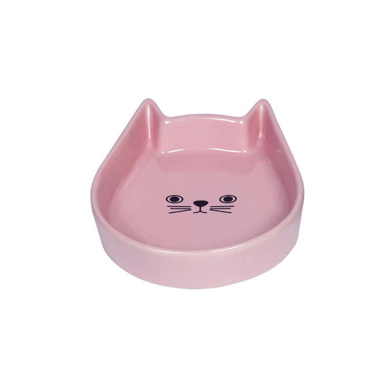 Nobby rožinis katės dubenėlis su mielu katės veideliu, pagamintas iš patvarios keramikos.
