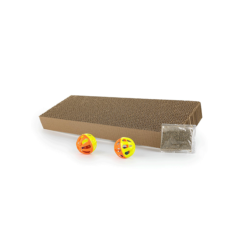 Happet draskyklė katėms su katžole ir kamuoliukais, pagaminta iš patvaraus kartono.