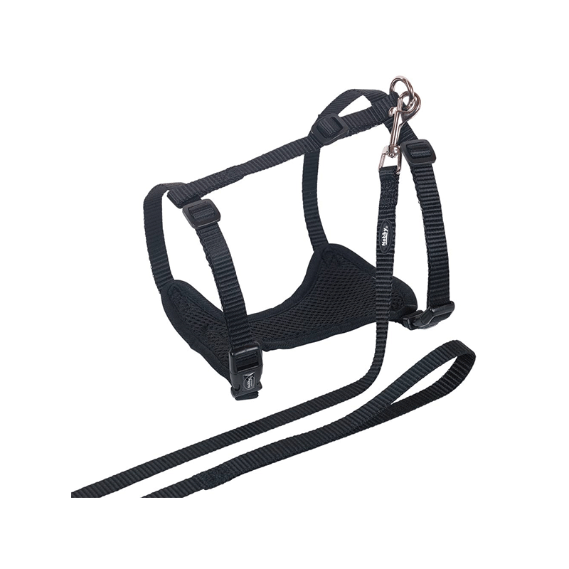 Nobby Mesh – juodos spalvos petnešų ir pavadėlio komplektas katėms.