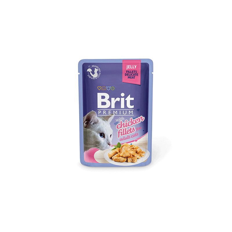 Brit Premium Delicate Chicken in Jelly – aukštos kokybės kačių konservai su puikaus skonio vištienos gabalėliais drebučiuose.