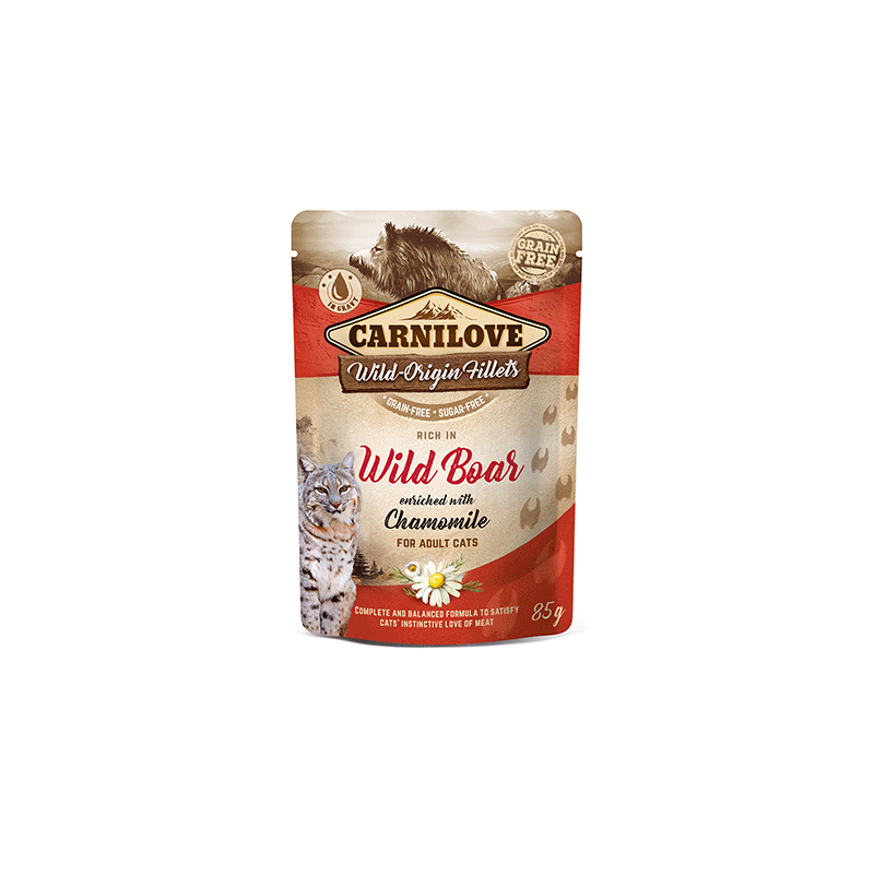 Carnilove Cat Wild Boar Chamomile – kačių maistas su šerniena ir ramunėlėmis.