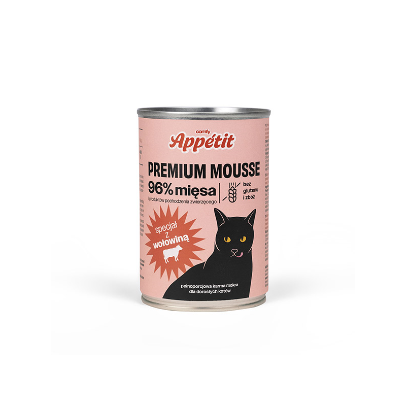 Comfy Appetit Premium Mousse – premium maistas katėms su jautiena.