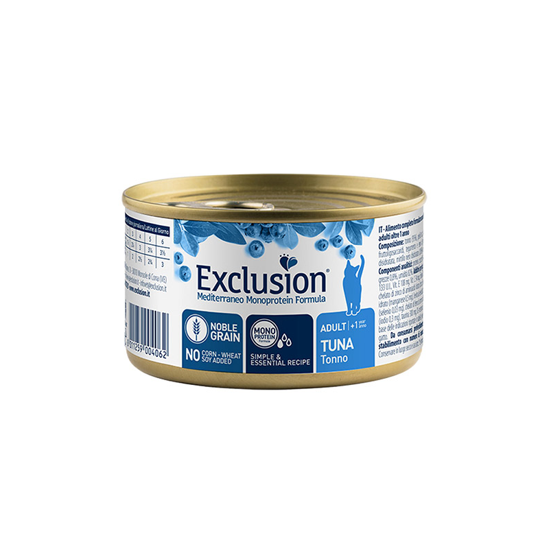 Exclusion šlapias maistas suaugusioms katėms su tunu, padedantis palaikyti sveiką šlapimo takų veiklą. Kačių konservai papildyti išskirtiniais Viduržemio jūros regiono supermaisto ingredientais, kurie suteikia vertingų maistinių medžiagų.