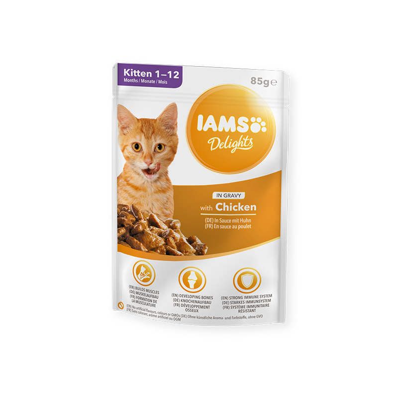 IAMS konservai kačiukams su gardžia vištiena padaže. 100 % visavertis ir subalansuotas konservuotas maistas kačiukams, pagamintas iš kokybiškų ir lengvai virškinamų ingredientų.