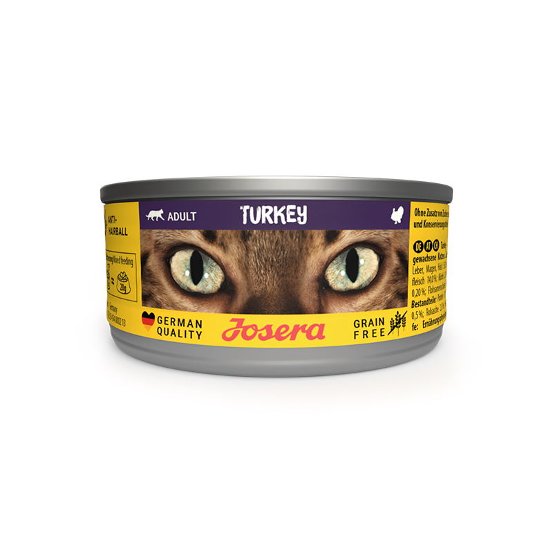 Josera konservai katėms su sultinga kalakutiena, naudingi šlapimo takų veiklai ir gausūs omega-3 riebalų rūgščių.