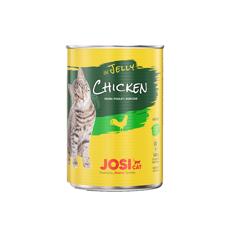 JosiCat chicken in jelly – aukštos kokybės konservai katėms su vištiena drebučiuose, subalansuoti suaugusioms katėms.