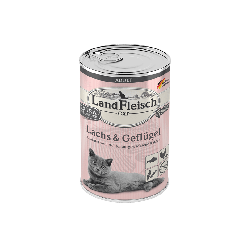 LandFleisch konservai katėms su lašiša ir paukštiena, 400 g