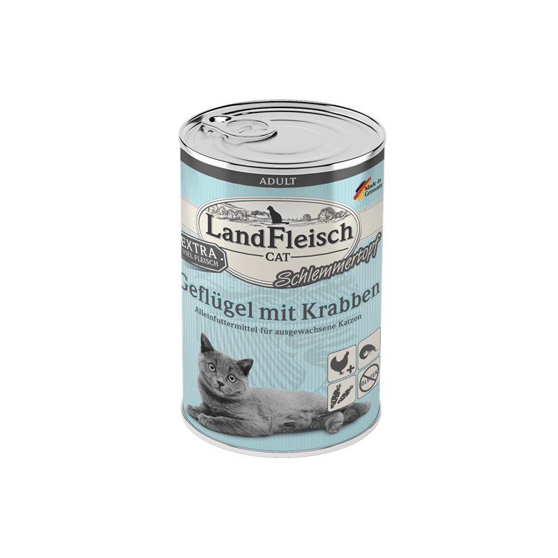 LandFleisch konservai katėms su paukštiena ir krabų mėsa, 400 g