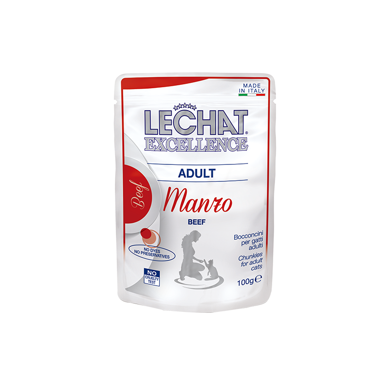 Lechat konservai suaugusioms katėms su jautiena, be dirbtinių dažiklių, konservantų ir pridėtinio cukraus.