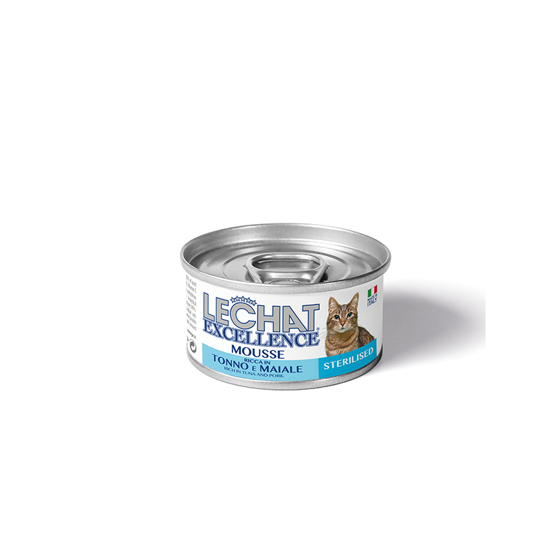 Lechat Exellence tuno ir kiaulienos konservai sterilizuotoms katėms, 85 g
