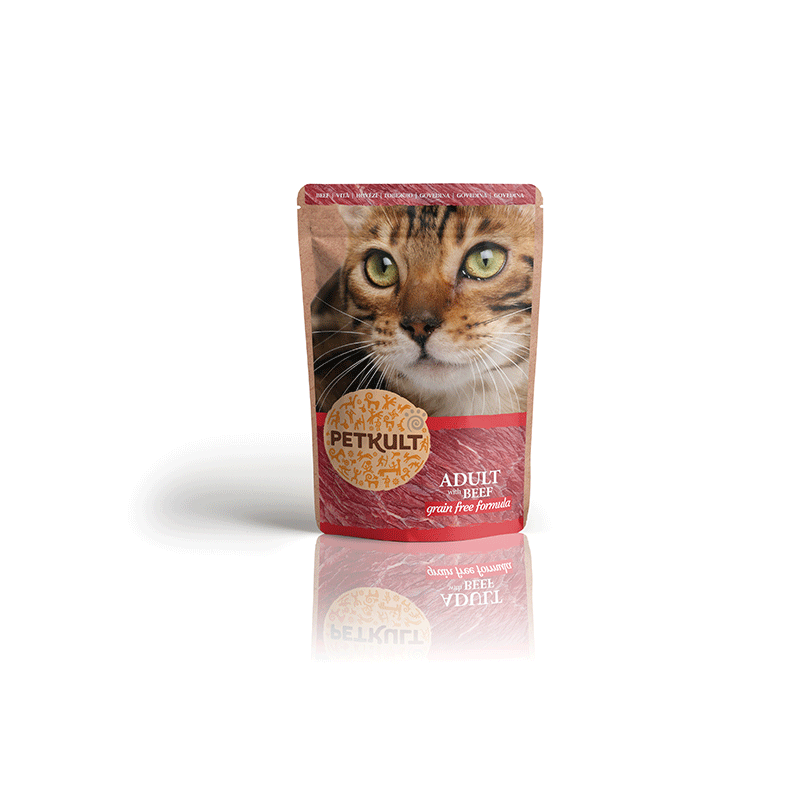 Petkult Adult Beef – begrūdis maistas katėms su jautiena.