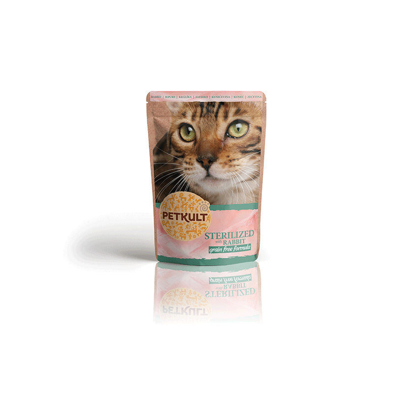 Petkult Sterilized Rabbit – begrūdis maistas sterilizuotoms katėms su triušiena.