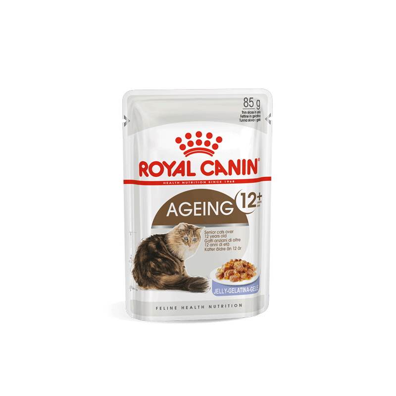 Royal Canin konservai senyvoms katėms su minkštais gabalėliais drebučiuose. Maistas gausus vertingų maistinių medžiagų, palengvinančių senėjimo požymius ir palaikančių sveiką sąnarių bei inkstų būklę.