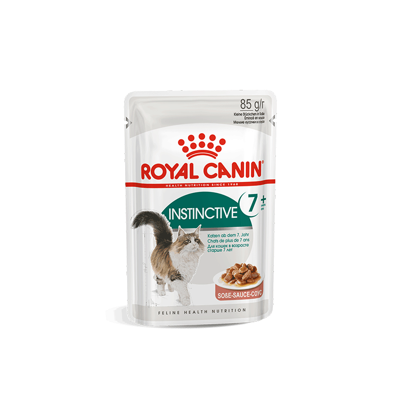 Royal Canin Instinctive in Gravy 7+ – šlapias maistas katėms padaže, padedantis palaikyti gyvybingumą ir sveiką inkstų būklę.