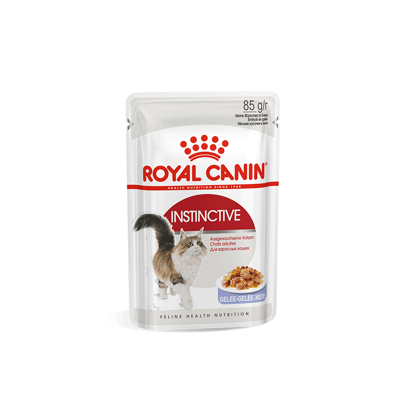 Royal Canin Instinctive in Jelly – šlapias maistas katėms drebučiuose, suteikiantis energijos ir padedantis palaikyti sveiką šlapimo takų veiklą.