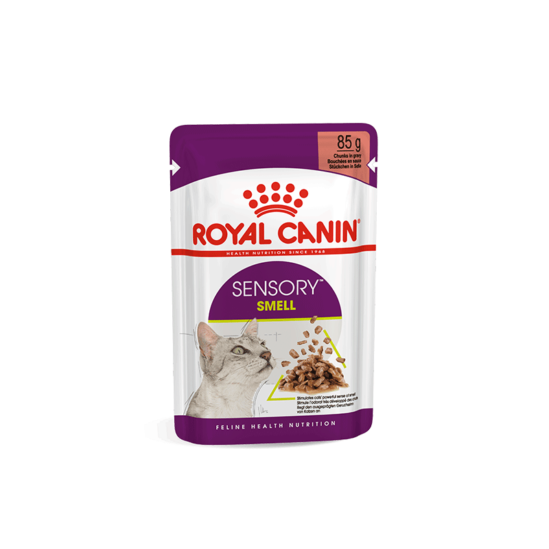 Royal Canin Sensory Smell in Gravy – šlapias maistas katėms padaže, padedantis sustiprinti uoslę.