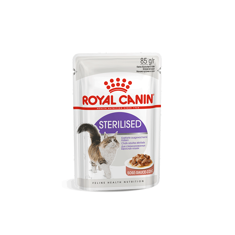 Royal Canin konservai sterilizuotoms katėms, palaikantys sveiką šlapimo takų sistemą ir vidutinį kūno svorį. Maistas sudarytas iš plonų gabalėlių padaže, ypač mėgstamų suaugusių kačių.