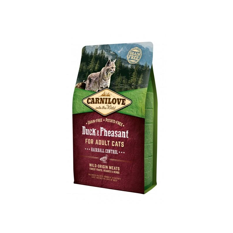 Carnilove Duck & Pheasant Adult Hairball Control – super premium kačių maistas be grūdų, gausus natūralių vitaminų ir antioksidantų.