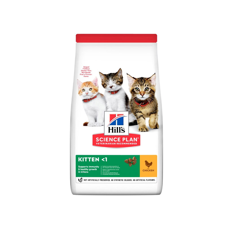 Hill's sausas kačiukų maistas su vištiena, padedantis patenkinti besivystančių kačiukų poreikius.