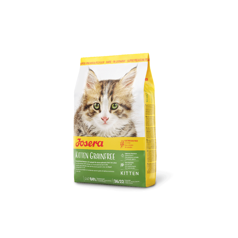 Josera Kitten Grainfree – sausas maistas kačiukams, puikiai tinkantis pirmaisiais gyvenimo mėnesiais.