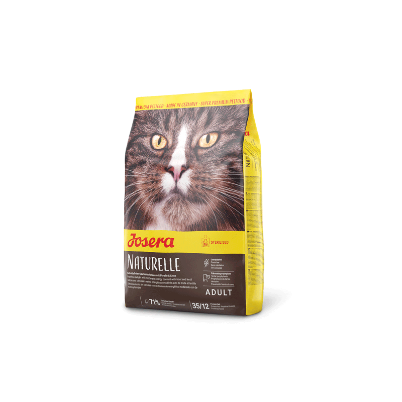 Josera Naturelle – begrūdis ėdalas katėms su lęšiais ir upėtakiu.