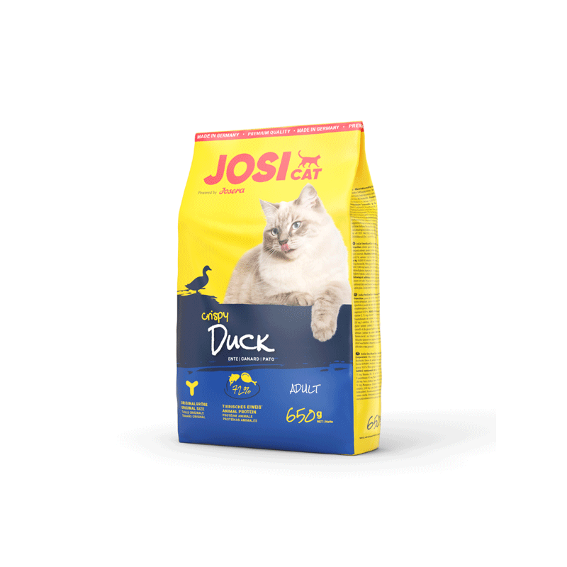 JosiCat Crispy Duck, 650 g – aukštos kokybės sausas maistas katėms su traškia antiena.