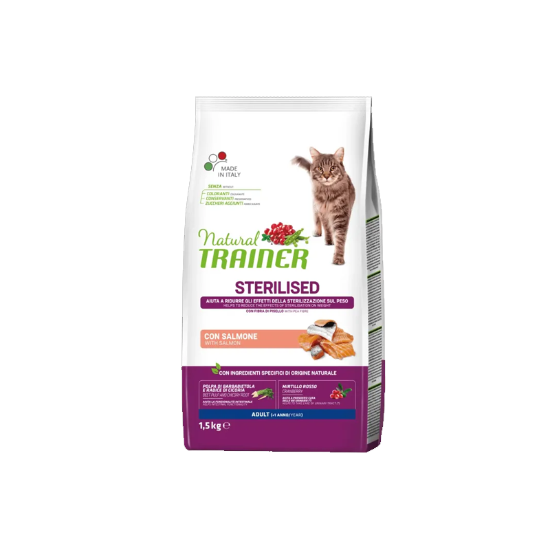 Natural Trainer Cat sausas maistas su lašiša sterilizuotoms katėms, 1,5 kg