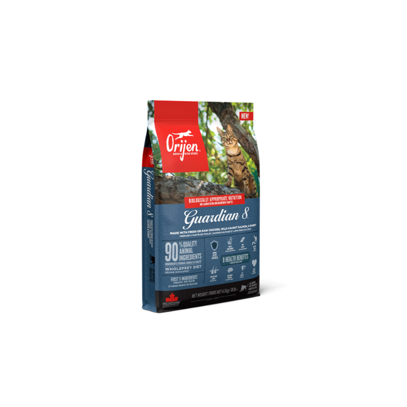 Orijen Guardian 8 – super premium maistas katėms, pagamintas Kanadoje iš aukščiausios kokybės ingredientų, užtikrinančių puikią katės sveikatą.