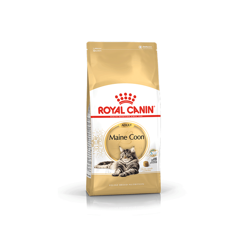 Royal Canin sausas maistas Meino meškėnų veislės katėms, padedantis palaikyti sveiką širdį, sąnarius ir blizgų kailį.