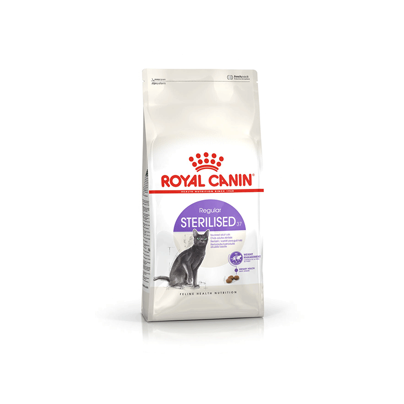 Royal Canin sausas maistas sterilizuotoms katėms, linkusioms priaugti antsvorio. Maistas gausus baltymų, kurie padeda kontroliuoti katės kūno svorį ir raumenų masę.