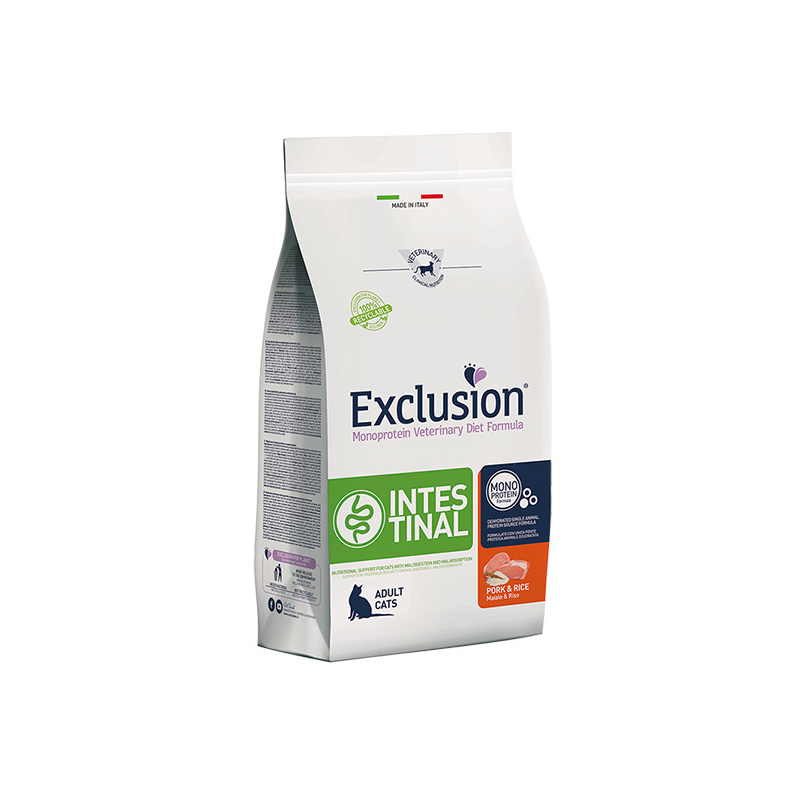 Exclusion Intestinal Cat Pork & Rice – dietinis maistas katėms su kiauliena ir ryžiais.