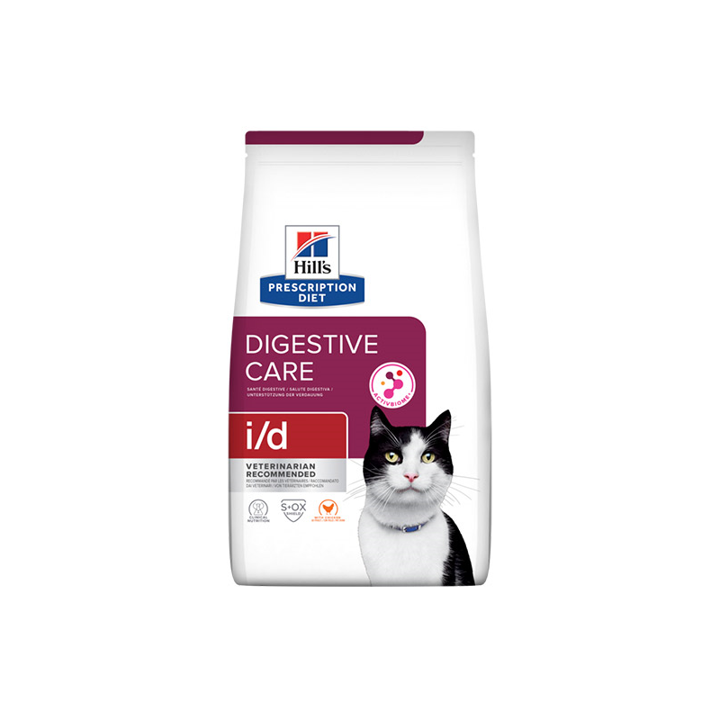 Hill's PRESCRIPTION DIET i/d Digestive Care sausas kačių maistas su vištiena, padedantis palaikyti sveiką virškinimą.