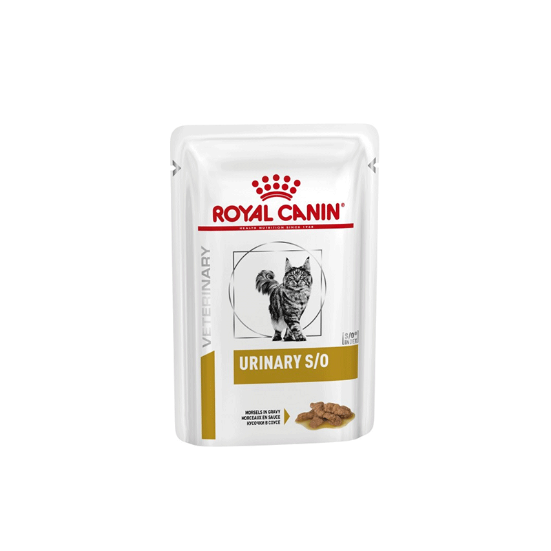 Royal Canin Cat Urinary S/O in Gravy – šlapias kačių maistas, skirtas šlapimo takuose susidariusiems struvitiniams akmenims tirpdyti ir užkirsti kelią jų pasikartojimui.
