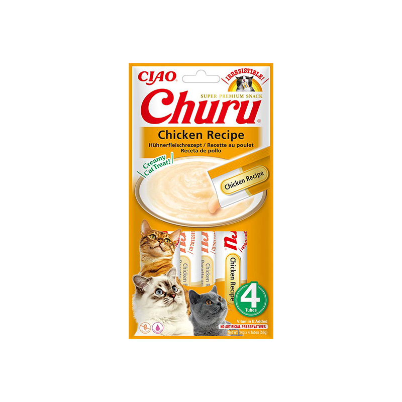 Churu skanėstai katėms, kurių sudėtyje mažai kalorijų, gausu drėgmės ir nėra grūdų. Gardus kreminis užkandis iš vištienos, mėgstamas visų kačių!