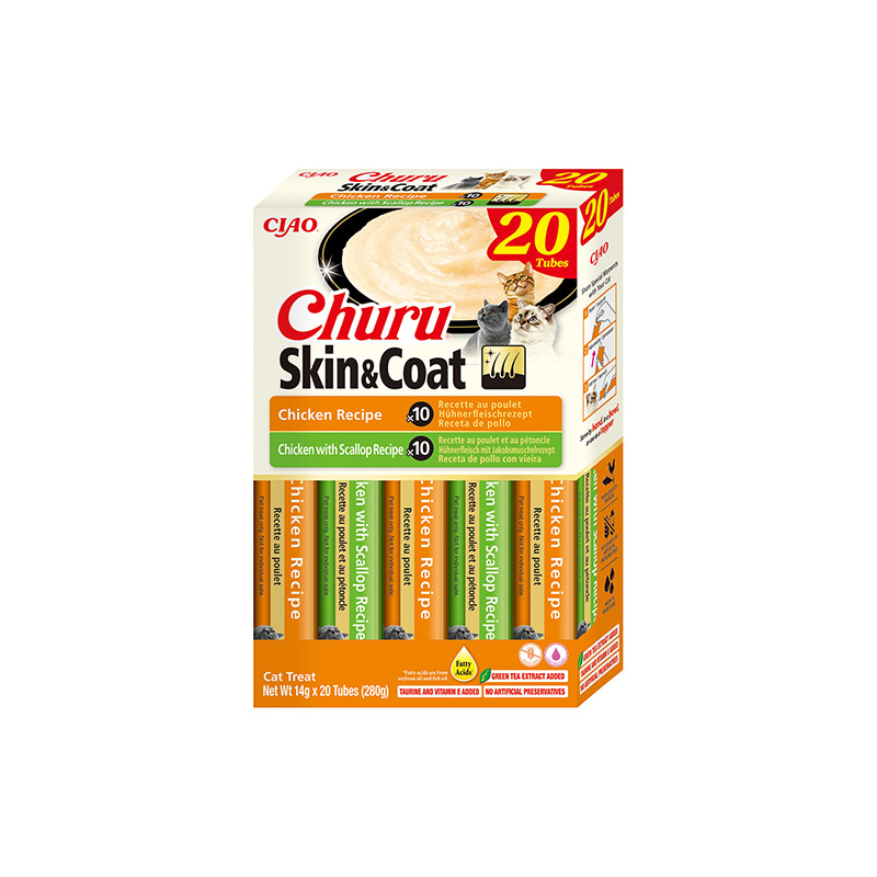 Churu Skin & Coat kreminis skanėstas su vištiena katėms, 20 vnt.